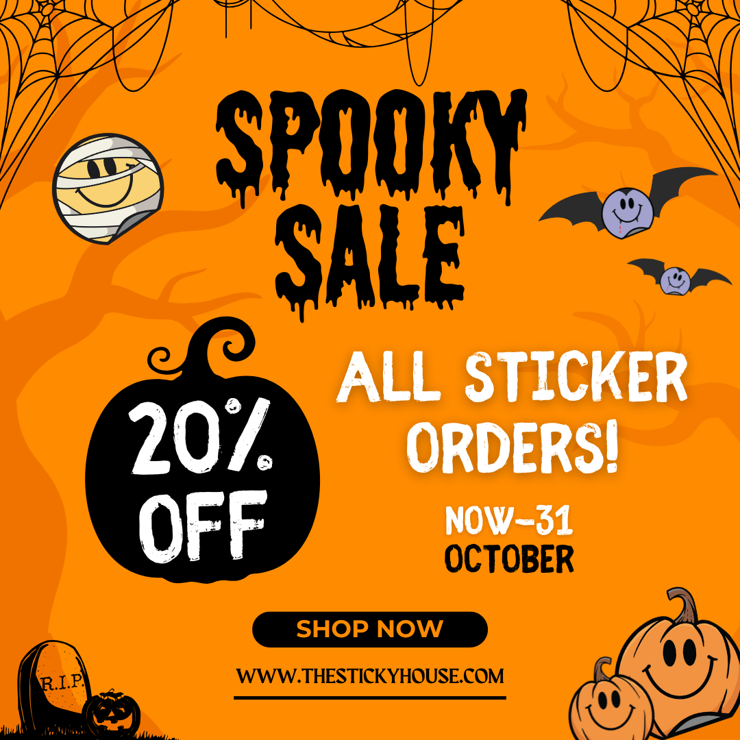 Get 20% OFF with our NEW October sale! Just in time for the Halloween season ๐ Sale will be automatically applied at checkout on all STICKER and LABEL orders only! Happy spooky season, and don't forget to smile ๐ป